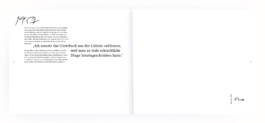 Das Künstlerbuch ermöglicht einen Einblick in die Arbeit des Malers Cy Twombly. Seine Prinzipien der Vielschichtigkeit und des Losgelösten äußern sich im freien Layout und dem Einsatz von Collagen.